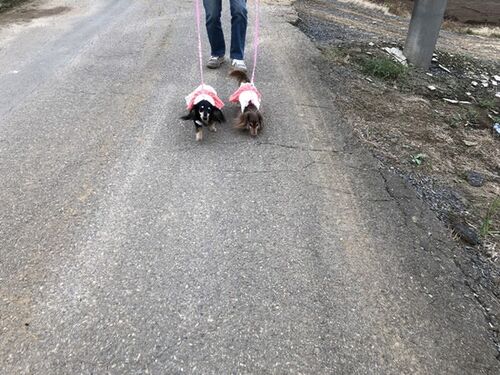 この日は2回目のお散歩〜 雨で行けない日もあるので〜 行ける時は朝と夕〜行くようにしてます「アニー」と「アン」お散歩が好きなので〜とっても嬉しそうでした 今日のわんず happy 001